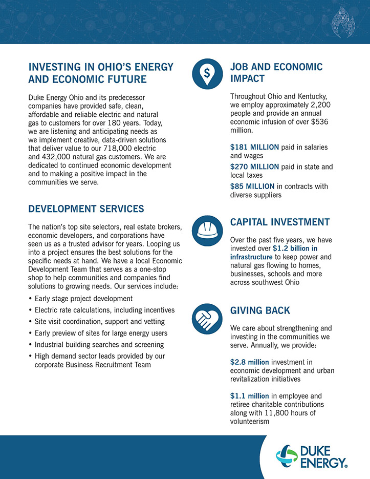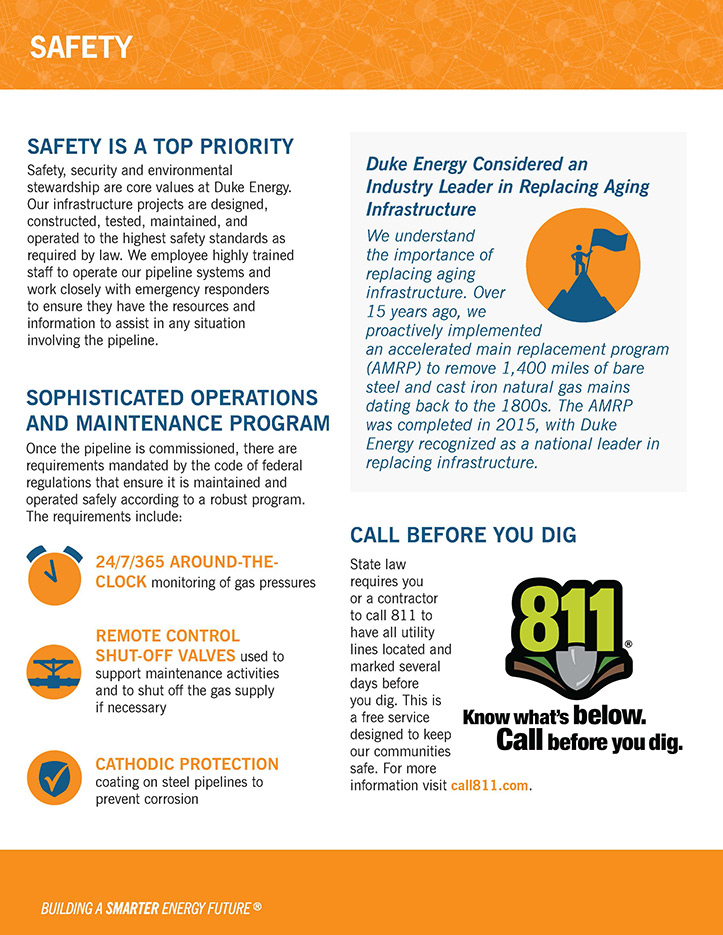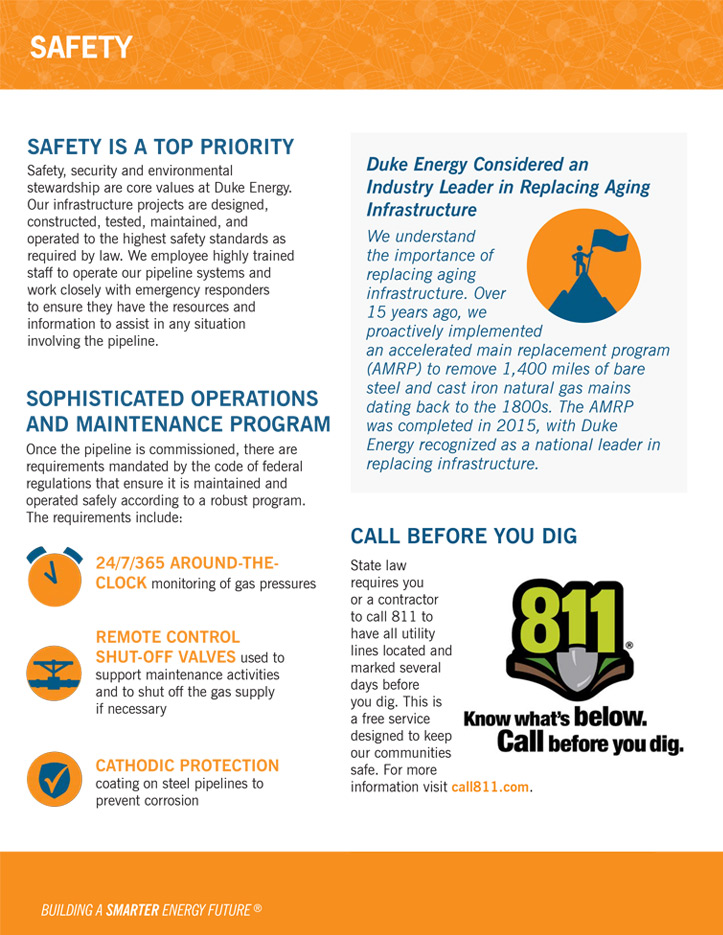 The following is the Duke Energy brochure discussing the project overview, its relation to economic development, routing, safety, construction and restoration, and easements: